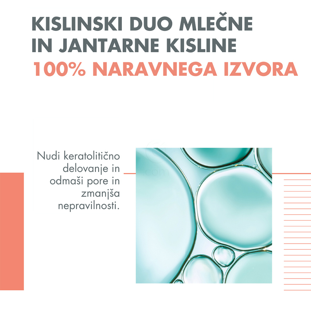 Patentirana kombinacija naravnih kislin spodbuja obnavljanje kože, pospešuje njen sijaj in pomaga doseči bolj enakomeren ton kože. Klinično dokazano, da vidne izboljšave opazimo že po 10 dneh uporabe. Serum je namenjen odraslim in je idealen kot del dnevne rutine za nego kože, ki potrebuje ciljno eksfoliacijo in nego nepravilnosti.