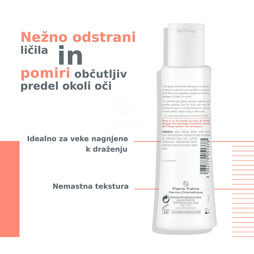 Avène Blagi gel je posebej formuliran za občutljive oči in osebe, ki nosijo kontaktne leče. Nežno odstranjuje ličila s predela okoli oči brez drgnjenja, ne zamegli vida in je primeren tudi za najbolj občutljive uporabnike. Gel je izotoničen s solzami in brez dišav, kar zmanjšuje tveganje draženja ali alergijskih reakcij.