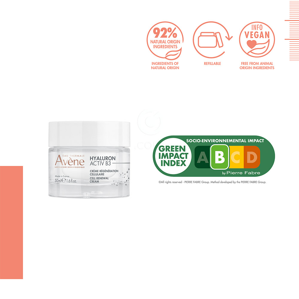 Krema vsebuje 92 % sestavin naravnega izvora, brez sestavin živalskega izvora, kar zagotavlja nežno nego, primerno tudi za občutljivo kožo. Hialuronska kislina zapolni gube od znotraj, vitamin B3 pa krepi naravno zaščito kože, hkrati pa zmanjšuje znake staranja. Rezultat je bolj gladka, napeta in sijoča koža.