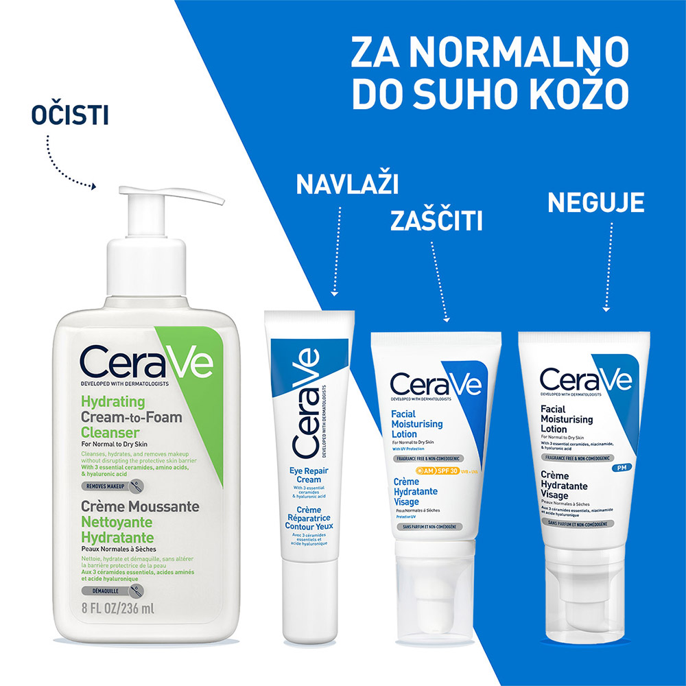 CeraVe obnovitvena krema za področje okoli oči je lahka, a učinkovita krema, razvita v sodelovanju z dermatologi, posebej za nego občutljive kože okoli oči.