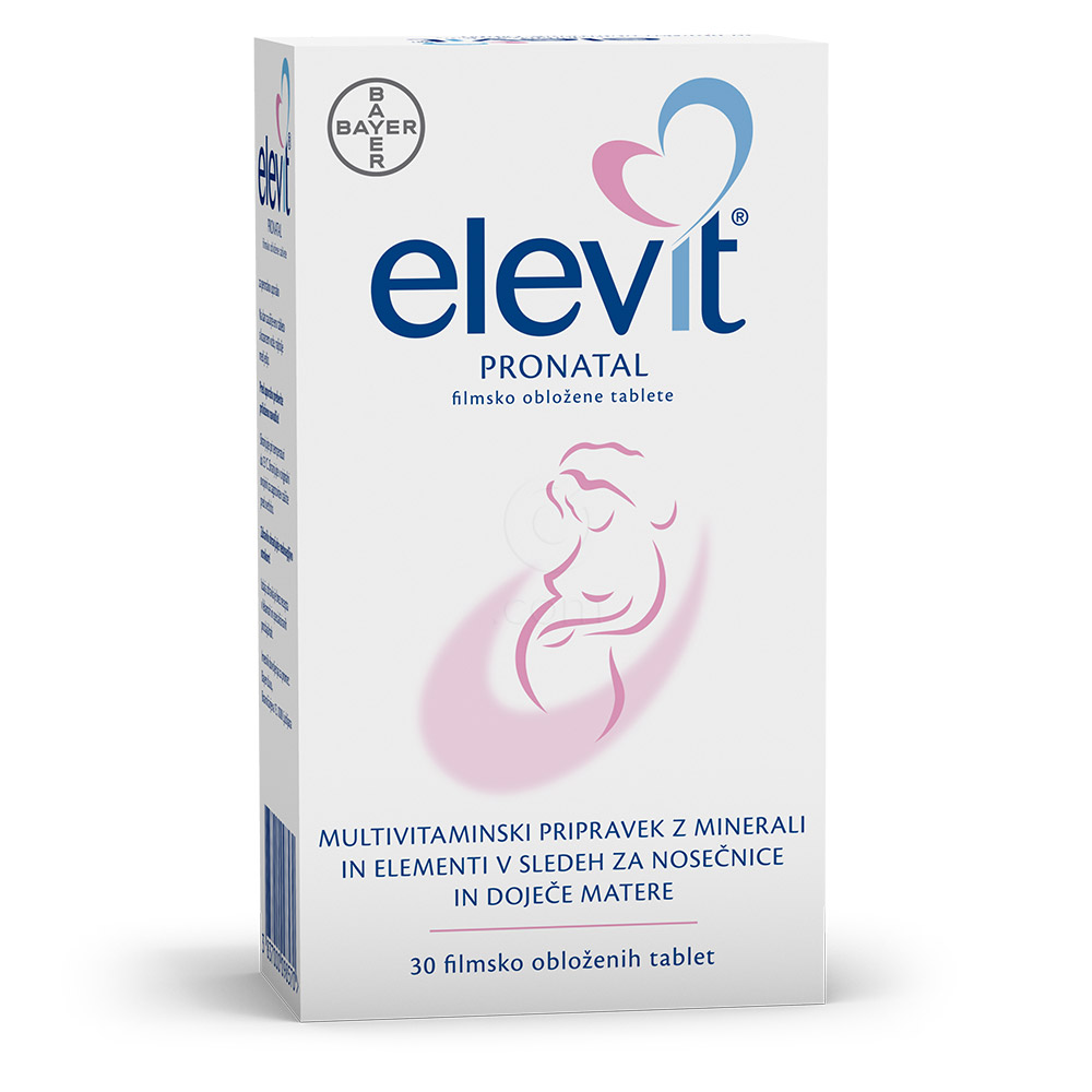 Elevit Pronatal je specializirano zdravilo za nosečnice in doječe matere, namenjeno preprečevanju pomanjkanja vitaminov, mineralov in elementov v sledeh zaradi neuravnotežene prehrane ali povečanih potreb v obdobju nosečnosti in dojenja. Vsebuje ključne vitamine, kot so A, D, B-kompleks, folno kislino, ter minerale, kot so železo, cink in kalcij, ki so nujni za zdrav razvoj ploda, preprečevanje anemije pri materi in ohranjanje njenega dobrega počutja. Folna kislina v izdelku pomaga preprečevati prirojene okvare ploda. Zdravilo je prilagojeno potrebam mater in otrok ter vključuje priporočene odmerke hranil za optimalno podporo v tem občutljivem obdobju. Pomembno je upoštevati opozorila glede preseganja vitaminov A in D ter posvet z zdravnikom pred uporabo.