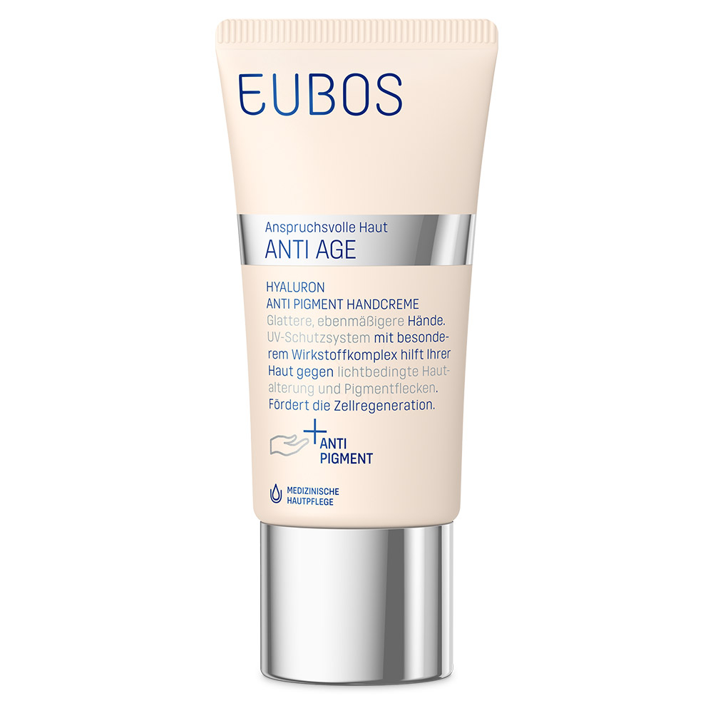 Eubos Anti-pigmentna krema za roke je inovativna negovalna krema, namenjena pomlajevanju kože rok. Njena formula učinkuje proti grobi koži, neenakomerni pigmentaciji in nastanku pigmentnih madežev ter nudi preventivno zaščito pred prezgodnjim staranjem kože, ki ga povzroča svetloba (foto-starost).