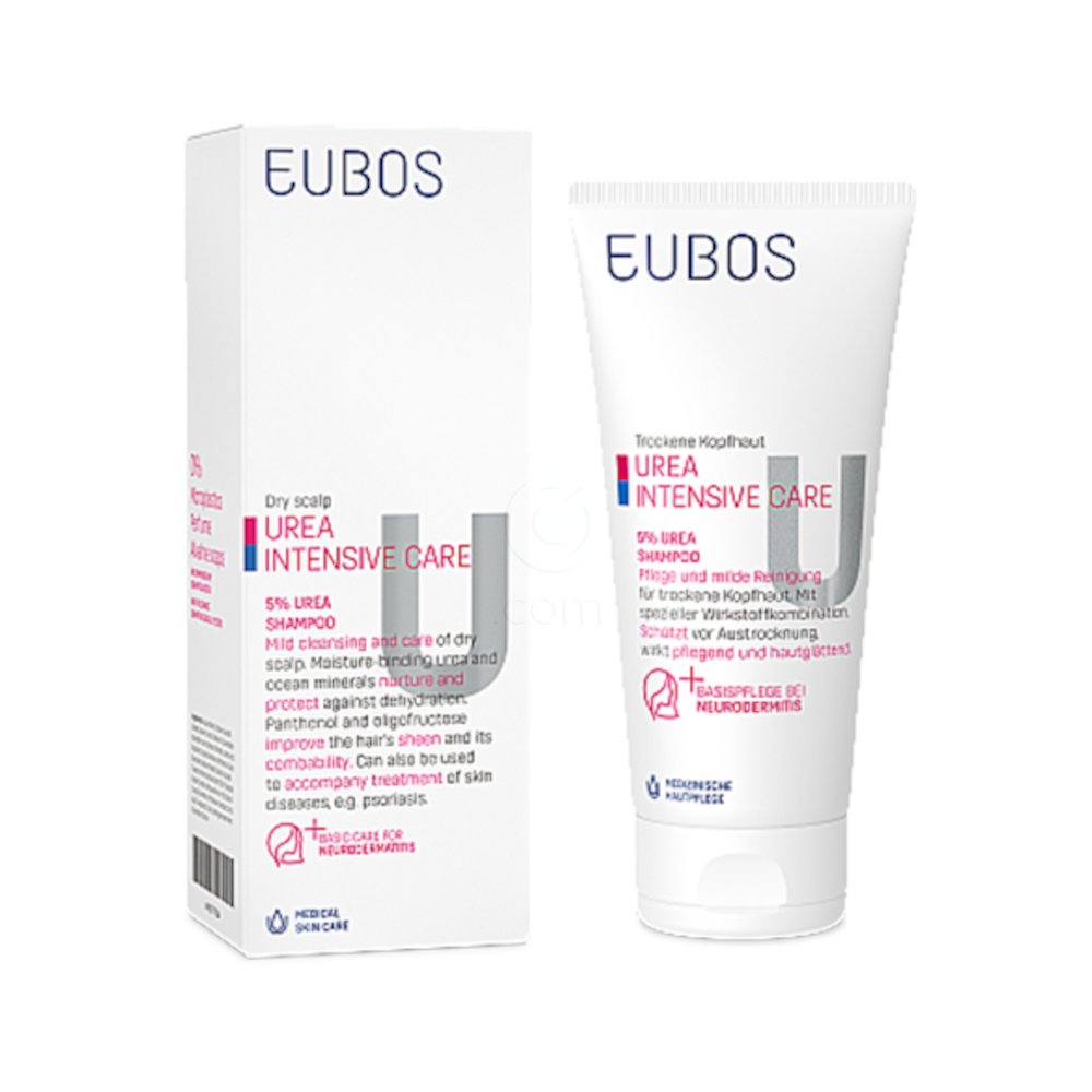 Eubos 5 % Urea šampon je nežen čistilni šampon, namenjen vsakodnevni negi suhih, zelo suhih in srbečih lasišč, ter posušenih ali poškodovanih las. Šampon vsebuje 5 % urea, ki veže vlago in pomaga vzdrževati optimalno hidracijo lasišča.