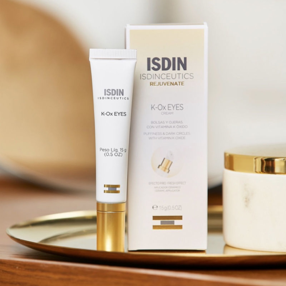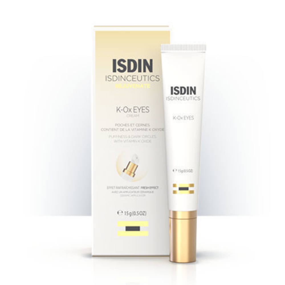 ISDIN Isdinceutics Rejuvenate K-Ox je krema za predel okoli oči z inovativnim keramičnim aplikatorjem, namenjena zmanjševanju zabuhlosti in temnih kolobarjev. Njena napredna formulacija hidrira občutljivo kožo okoli oči in postopoma izboljšuje videz mimičnih gub. Redna uporaba kreme pomaga pri negi temnih in modrih podočnjakov ter ohranja mladosten in svež videz očesnega predela. Idealna je za vsakodnevno nego, saj združuje učinek hlajenja keramičnega aplikatorja z aktivnimi sestavinami, ki podpirajo regeneracijo kože.