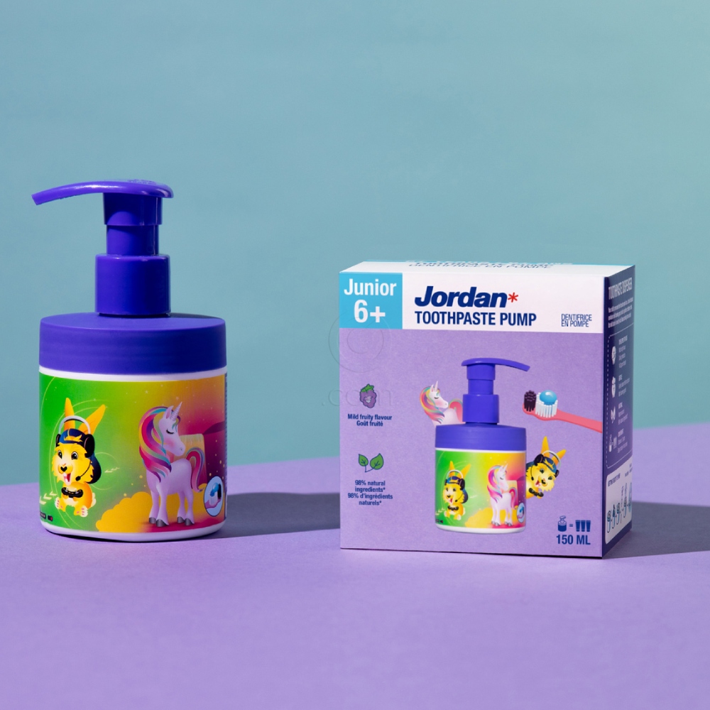 Jordan Junior zobna pasta je zasnovana posebej za otroke, saj združuje blag sadni okus, ki ga otroci obožujejo, z nežno formulo, ki vsebuje 0 % SLS in 98 % naravnih sestavin. Pasta nežno čisti zobe, ščiti dlesni in pomaga ohranjati zdrave in močne zobe že od najzgodnejših let.