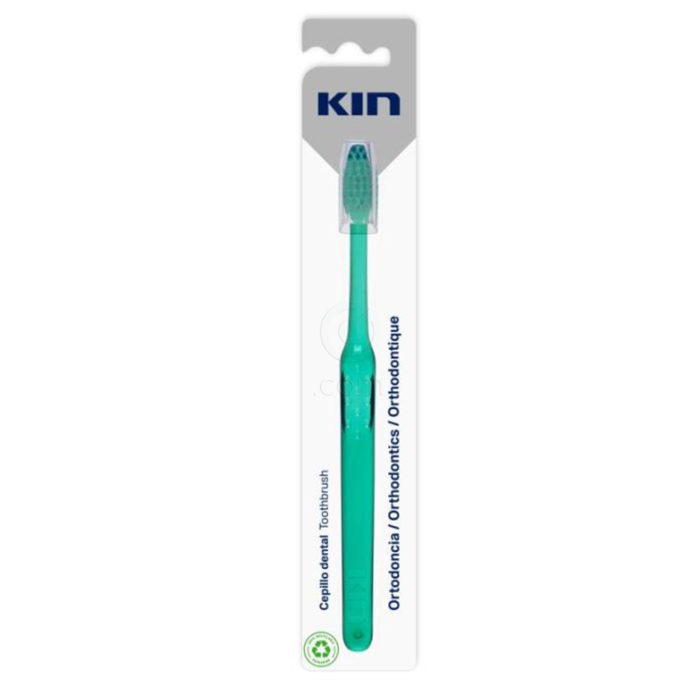 Kin ortodontska zobna ščetka je zasnovana posebej za osebe z fiksnim zobnim aparatom, saj omogoča temeljito in nežno čiščenje zob ter težko dostopnih predelov okoli nosilcev (bracketov). Majhna glava zobne ščetke je opremljena z okroglimi ščetinami Tynex, ki so razporejene v obliki črke "V", kar olajša dostop do vseh kotičkov zob in dlesni ter učinkovito odstranjuje zobne obloge in ostanke hrane.