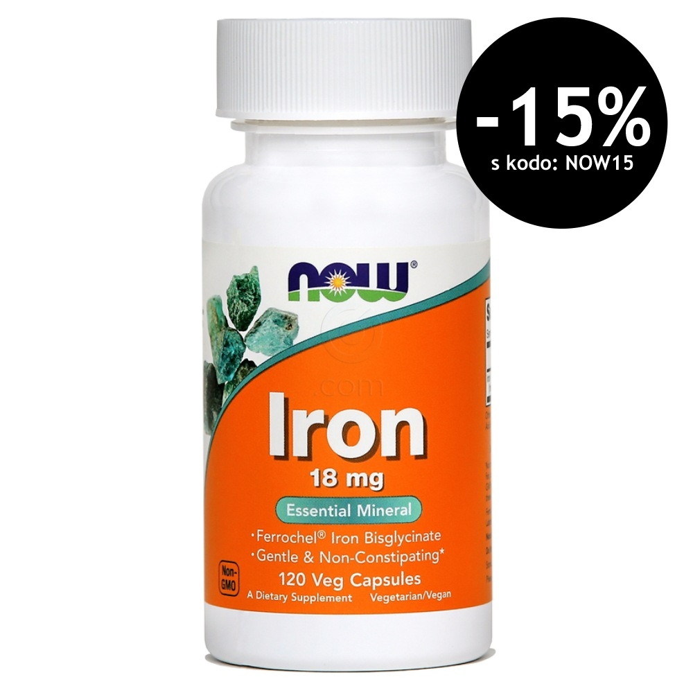 Ferrochel Iron NOW je visokokakovostno prehransko dopolnilo z železom v kelatni obliki, ki je izredno prijazno želodcu in se odlično absorbira. Železo je esencialen mineral, ki sodeluje pri prenosu kisika, nastajanju rdečih krvničk in hemoglobina, delovanju imunskega sistema, delitvi celic, kognitivnih funkcijah ter sproščanju energije pri presnovi. Formula je primerna za odrasle, nosečnice in doječe matere, ne povzroča zaprtja in je primerna za vegetarijance in vegane. Ferrochel Iron uporablja patentiran železov bisglicinat podjetja Albion Laboratories, Inc., ki zagotavlja visoko absorpcijo brez prebavnih težav.