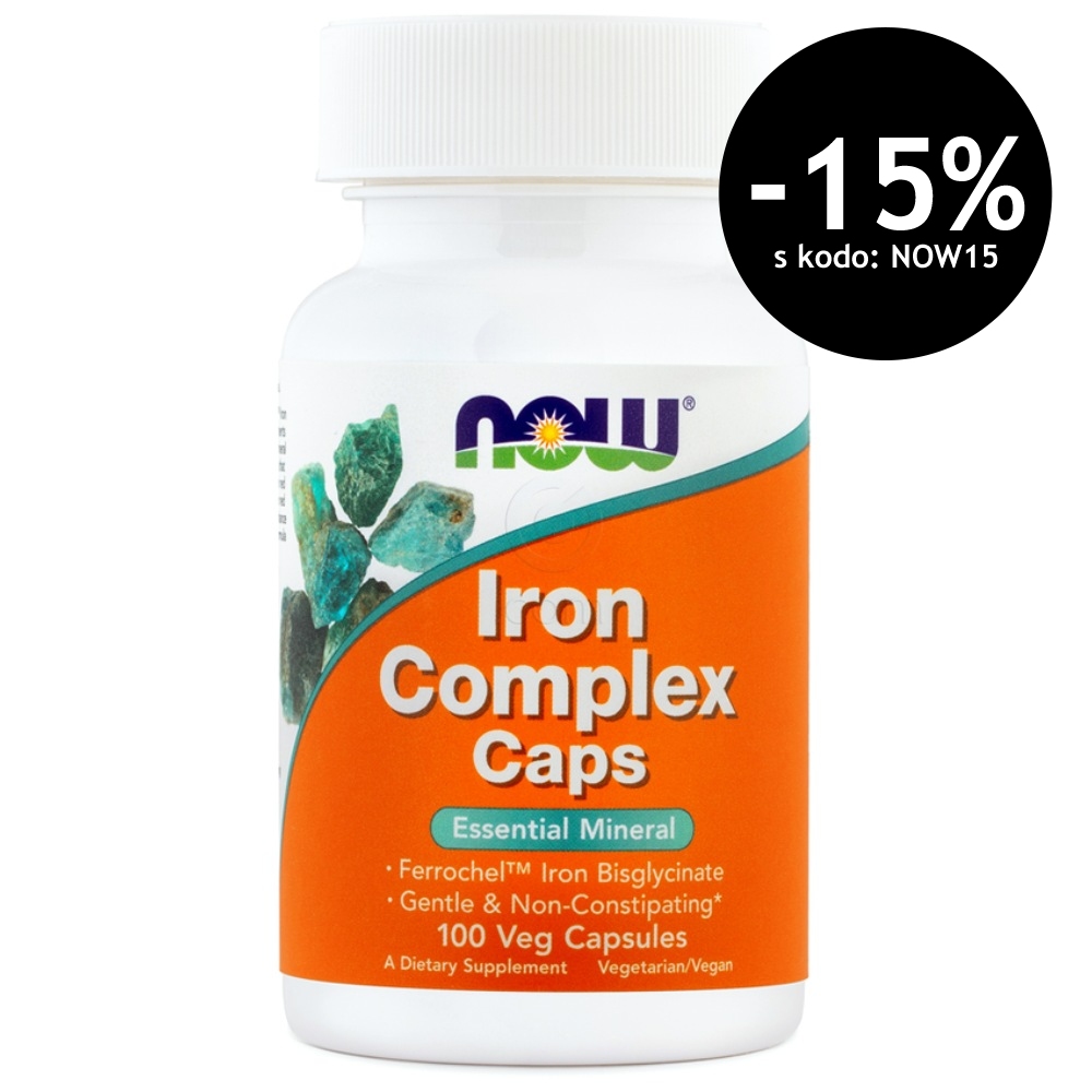 Železo kompleks NOW je prehransko dopolnilo z želodcu prijazno obliko železa (Ferrochel), ki se odlično absorbira in ne povzroča zaprtja. Formula vsebuje naravni vitamin B12, folno kislino in fitonutriente, ki podpirajo tvorbo hemoglobina in rdečih krvničk. Železo prispeva k prenosu kisika, nastajanju rdečih krvničk, delovanju imunskega sistema, delitvi celic, sproščanju energije ter kognitivnim funkcijam. Vitamin C povečuje absorpcijo železa in prispeva k zmanjšanju utrujenosti ter nastajanju kolagena, medtem ko folat in vitamin B12 podpirata tvorbo krvi, delovanje imunskega sistema in normalno psihološko delovanje. Izdelek je primeren za vegane in naravno brez glutena.