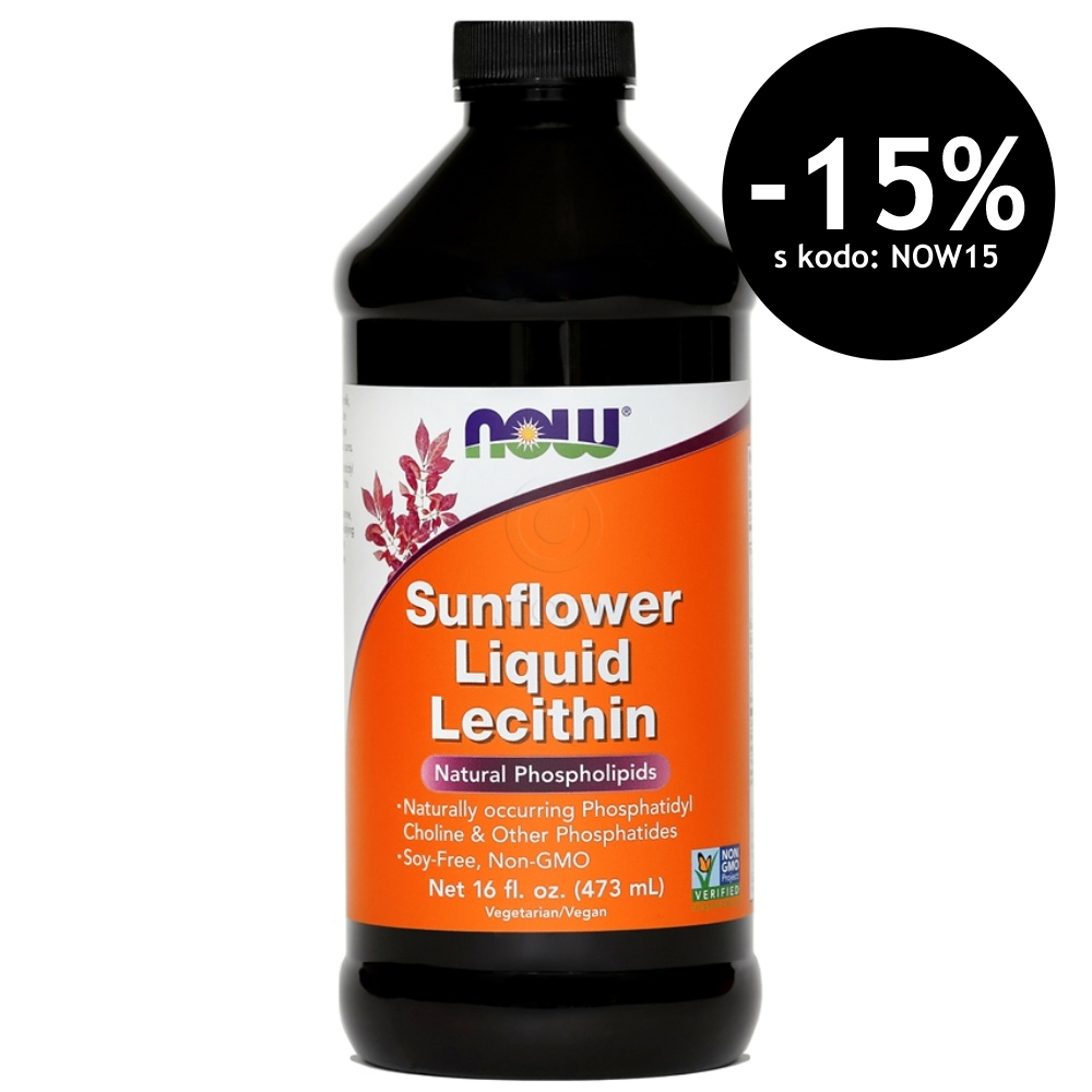 Sončnični Lecitin NOW tekočina je pridobljen iz sončničnega olja in predstavlja naravni vir fosfolipidov, med katerimi je najpomembnejši fosfatidilholin – ključna sestavina celičnih membran. Fosfatidilholin se naravno povezuje tudi v fosfatidilinozitol, fosfatidiletanolamin in esencialne maščobne kisline, ki sodelujejo pri številnih presnovnih procesih.
