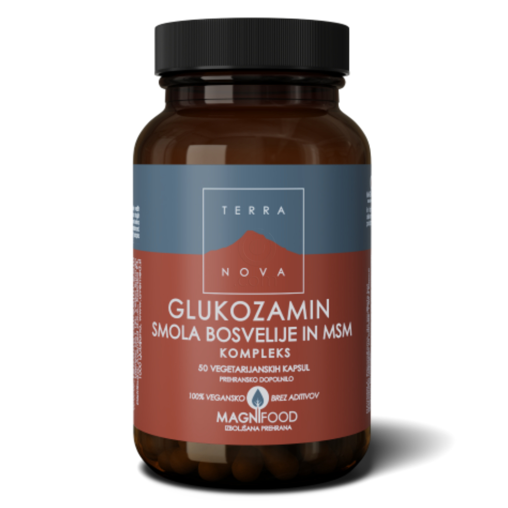 Terranova Glukozamin, smola bosvelije in MSM kompleks je napredno prehransko dopolnilo, zasnovano za podporo zdravju sklepov, hrustanca in vezivnih tkiv. Sinergijska kombinacija glukozamina, smole bosvelije in metilsulfonilmetana (MSM) deluje celostno – prispeva k ohranjanju gibljivosti, zmanjšanju togosti sklepov in podpira regeneracijo hrustančnega tkiva.